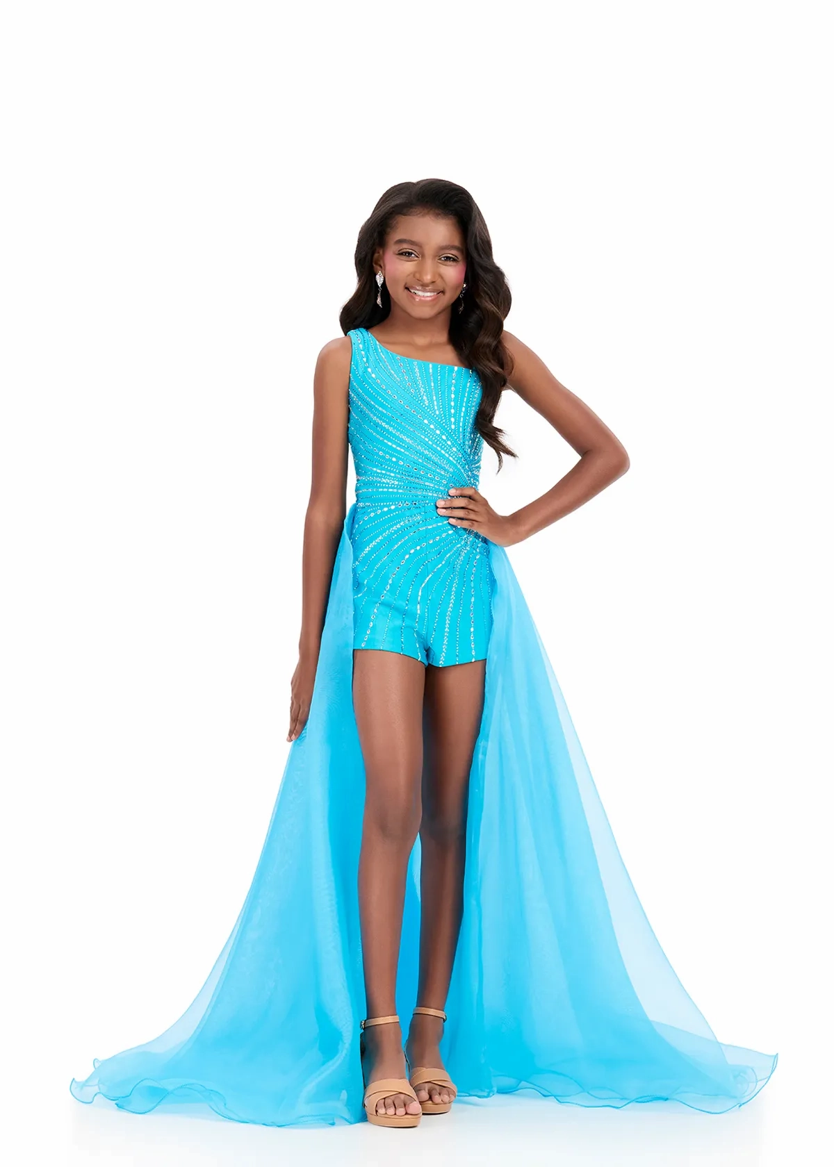 Make a bold fashion statement in ASHLEYlauren Style 8362, a striking two-piece look that combines modern glamour with show-stopping elegance. This standout design features a fully embellished fitted romper paired with a dramatic detachable overskirt, creating a high-impact silhouette that shines from every angle.
